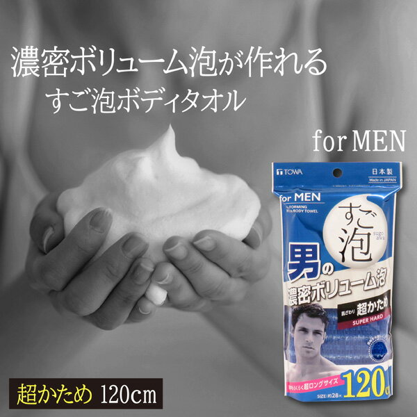 ボディタオル メンズ ナイロン 超ロングサイズ 120cm 超かため ネイビー メンズタオル 浴用タオル あかすりタオル ナイロンタオル 体洗うタオル 背中洗い あかすり タオル 泡立つ 濃密泡 MENS バス 風呂 バス用品 お風呂用品 バスグッズ 日本製 すご泡4